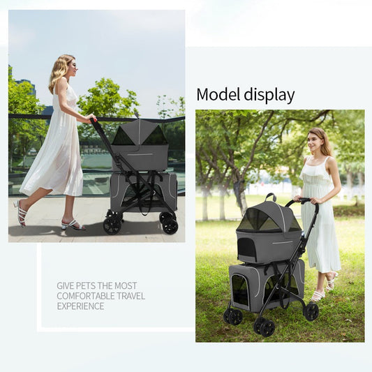 Foldable Pet Stroller with 2 Detachable Carriers PC200