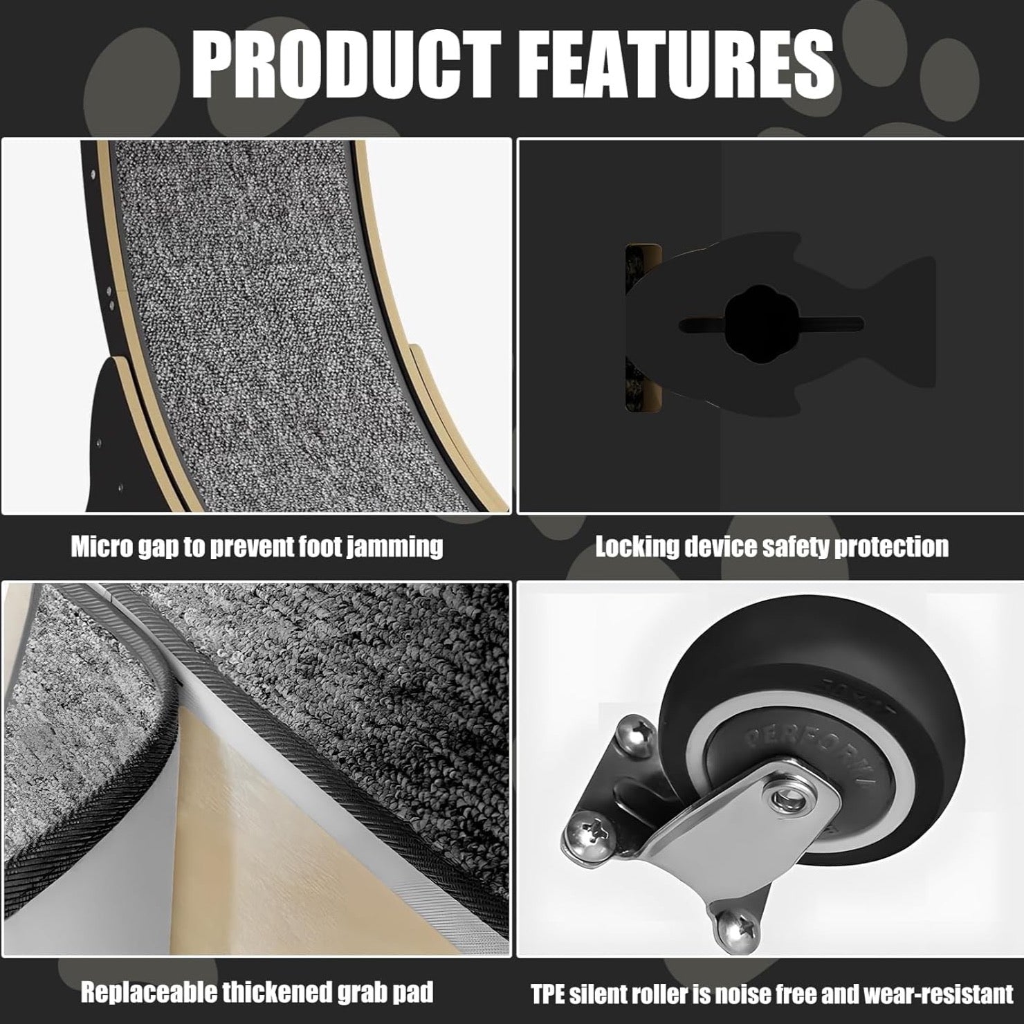 • Safe and reassuringreduced the gap between the base and the running wheel to prevent cats from pinching their feet while running. A built-in locking device in the product, which can control the cat's play time and lock it when no one is nearby to prevent accidents from happening without supervision.