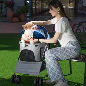 Our pet Stroller with detachable carrier provides first-class travel for your lovable pet! Whether you are taking a quick stroll around the block or a leisurely walk in the park, this durable 4-wheeled stroller makes for a safe and smooth ride.