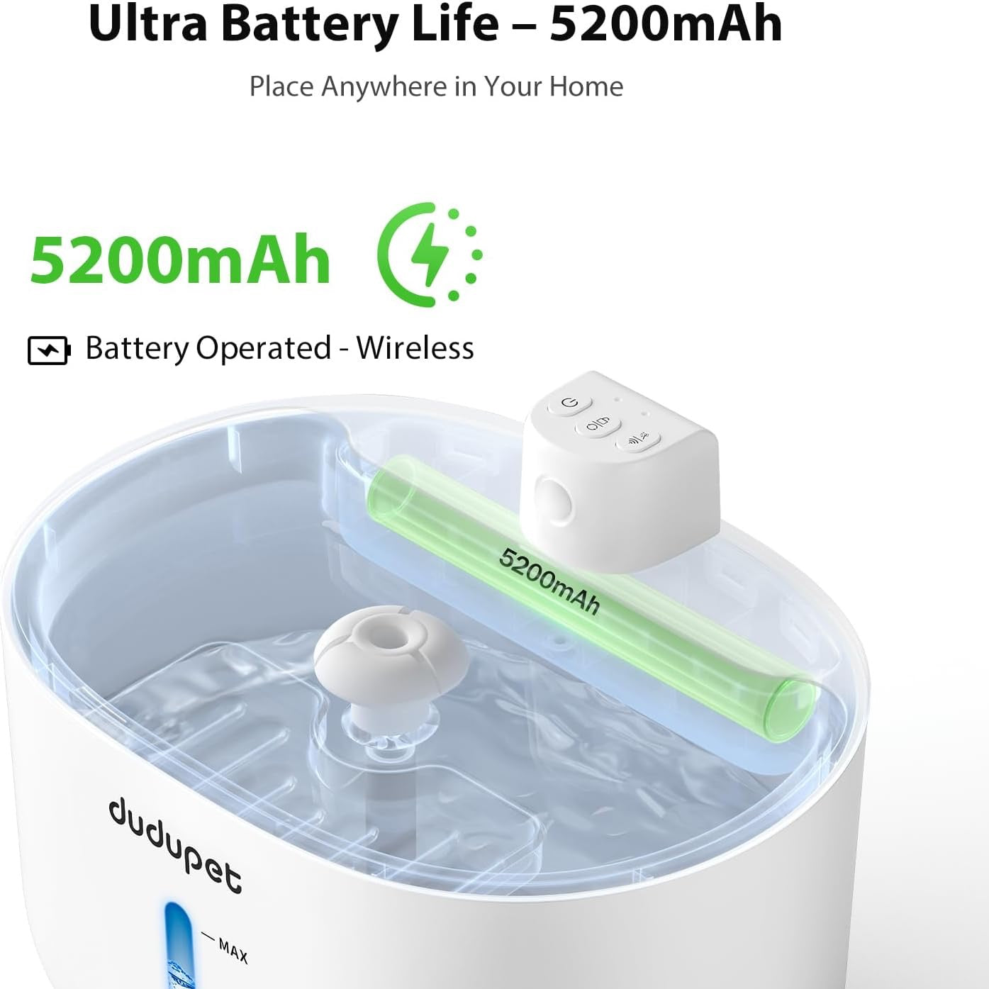 Say goodbye to the tangled wires, you can place the cordless Pet Drinking fountain wherever your pets need it, thanks to the massive rechargeable battery. One full charge provides up to 60-day of battery life.