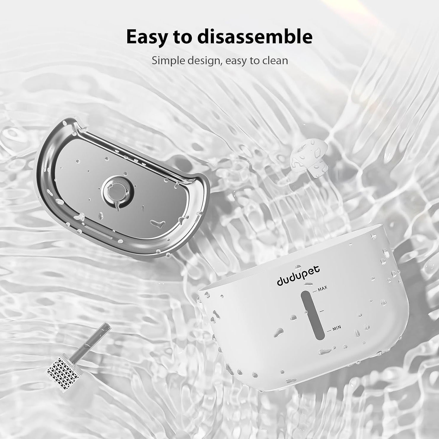 - The cat fountain features a detachable water tank design for easy refilling. The wireless water pump is easier to detach than a wired one, and there are no tangled cables to worry about when cleaning the pump and tank.